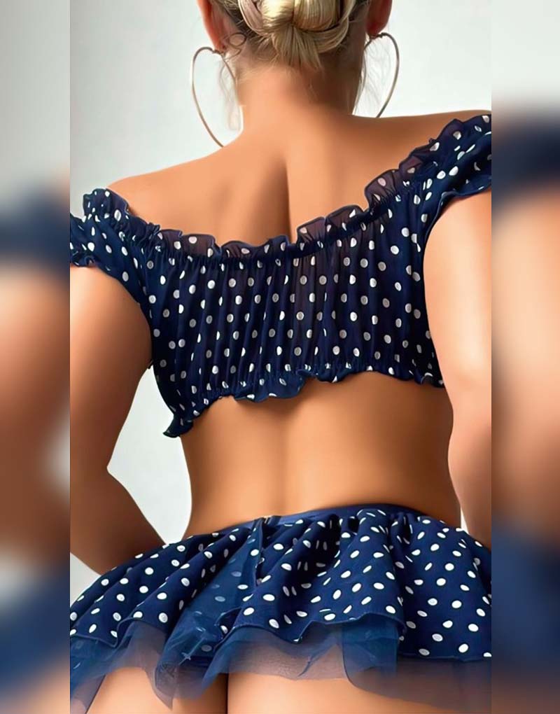 Fırfırlı Puantiyeli Lacivert Kostüm Gecelik