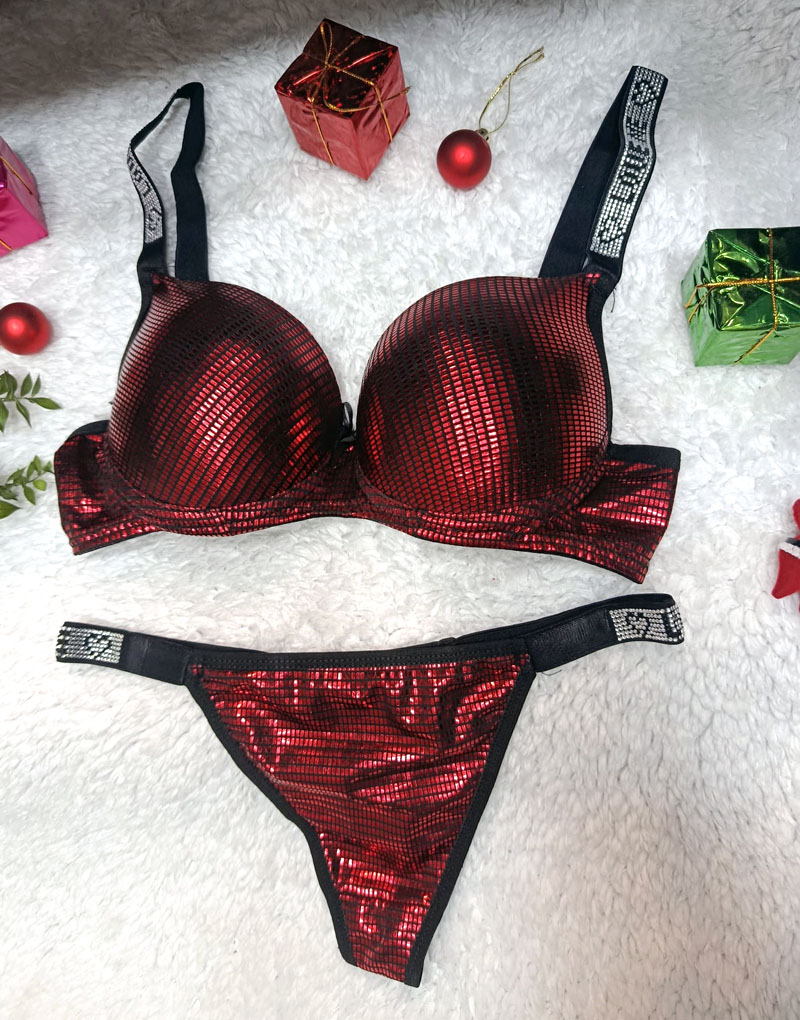 Parlak desenli sütyen takımı dolgulu